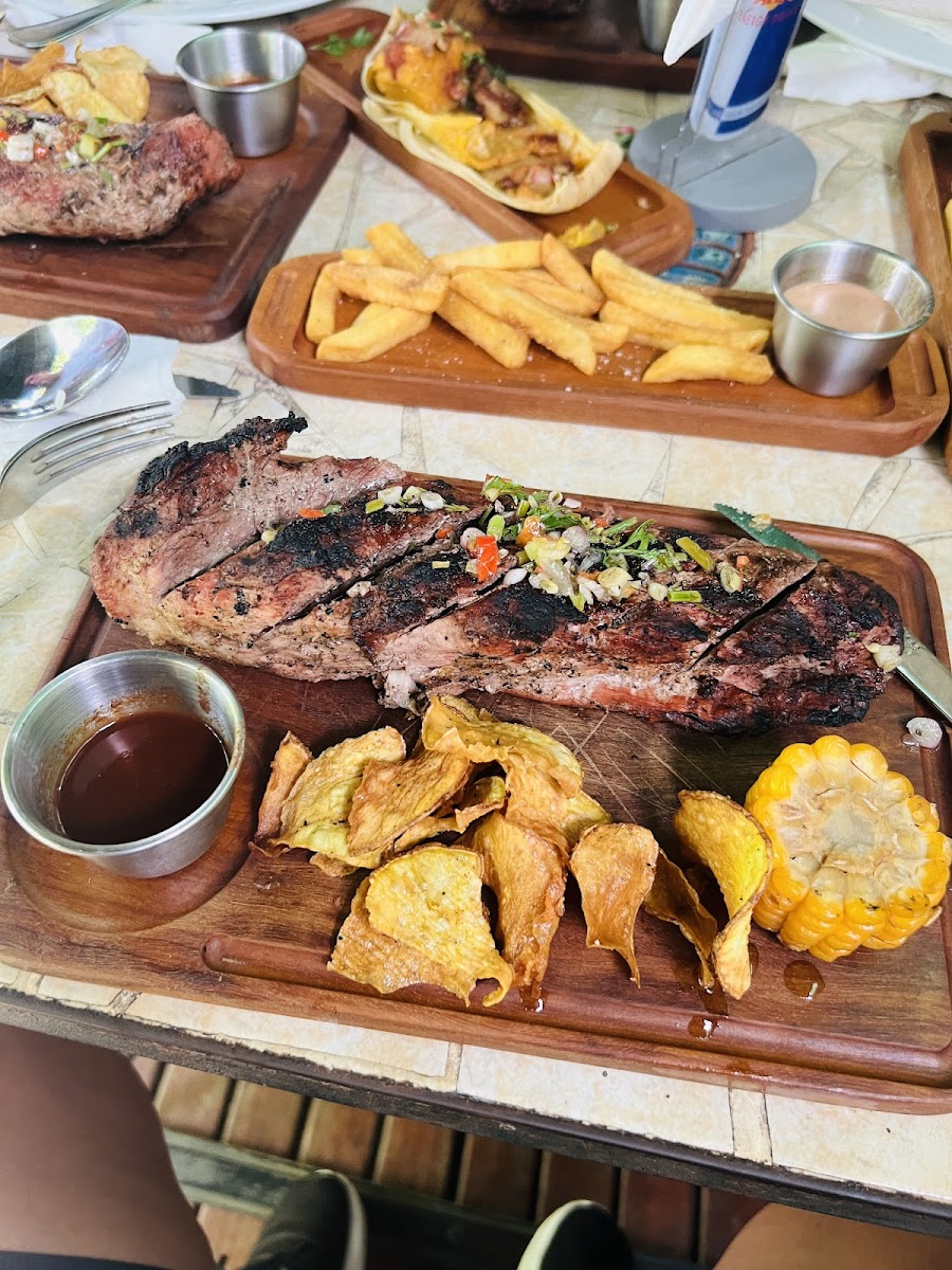 Toda la comida es deliciosa, verdaderamente vale la pena ir por la carne al grill y el delicioso sabor que aporta la cocina al carbón. El ambiente es muy rústico y acogedor con su propio huerto de plantas aromáticas y su propio cultivo de miel con abejas meliponas. Lo único que me ha dejado un poco que desear fue el servicio un poco despistado. Fui a comer con mis padres y tardaron más de 30 minutos en traernos las primeras bebidas, incluso después de haberles recordado un par de veces.